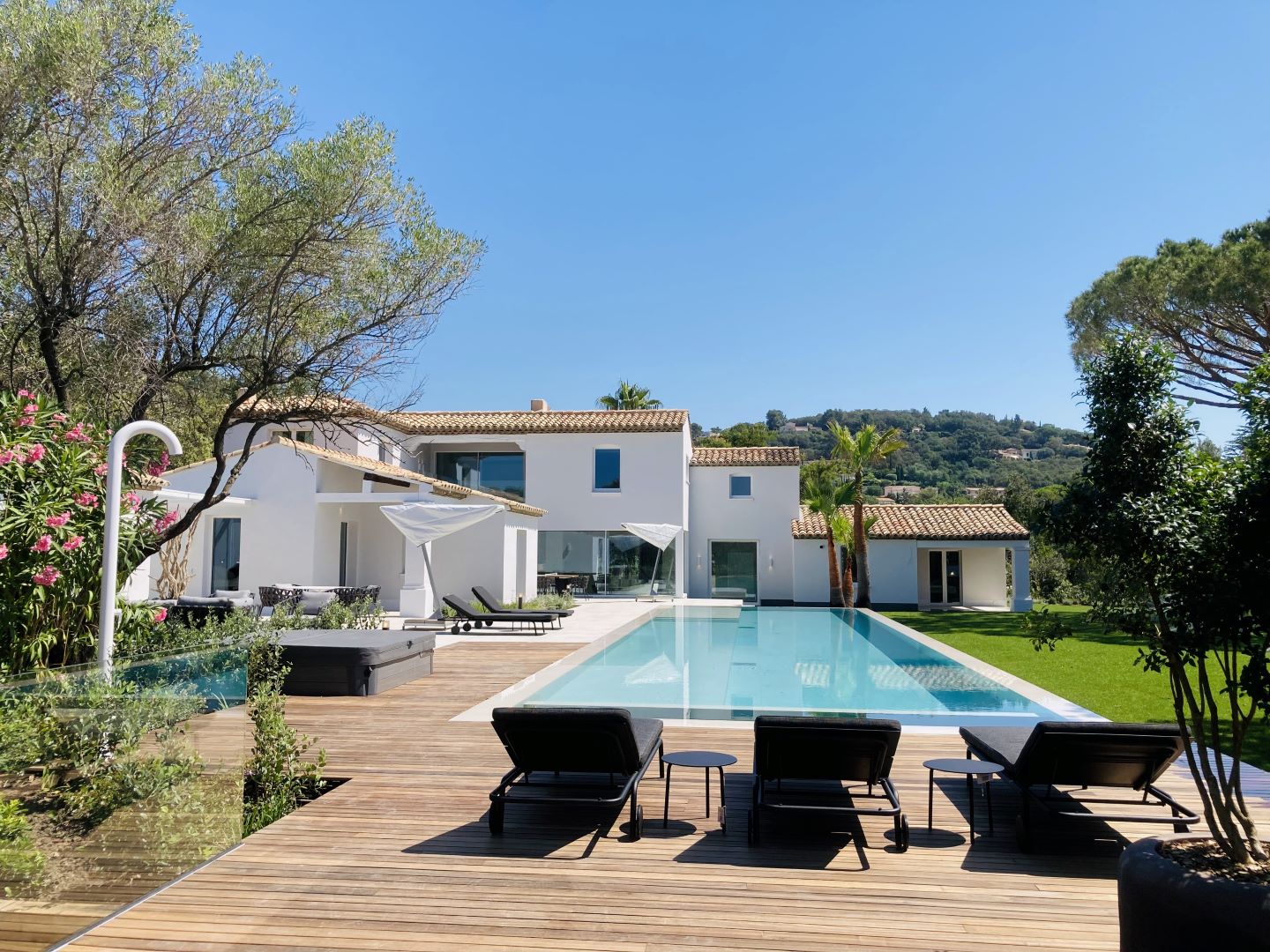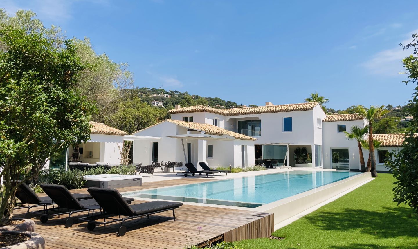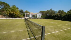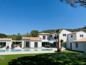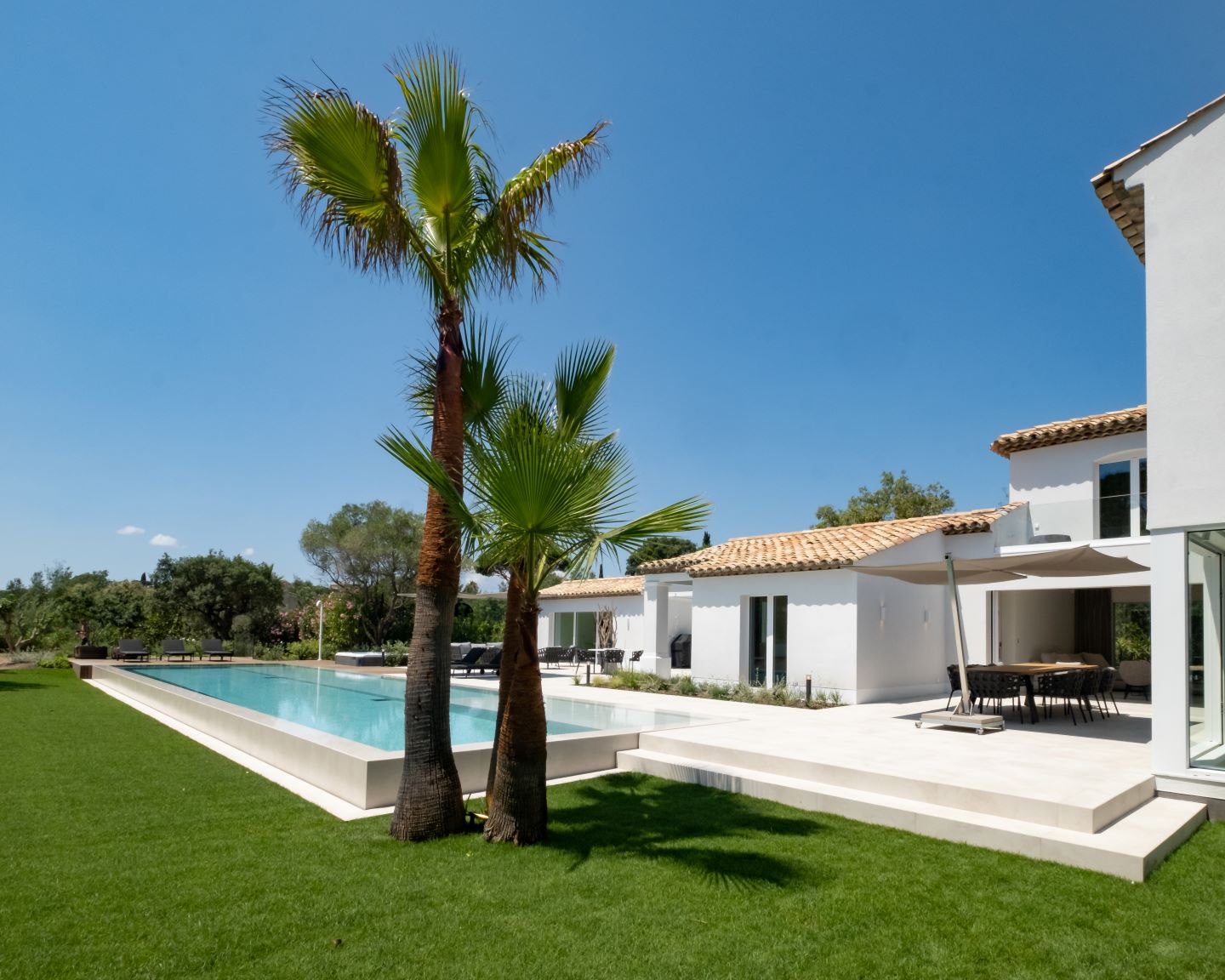 Grondige renovatie van een uitgestrekte Provençaalse villa gelegen in het exclusieve Domaine de Beauvallon. Het vlak terrein met een oppervlakte van 5000m² vormt het decor voor deze prachtige villa omringd door een volledig aangelegde parktuin. De traditionele villa werd tijdens de renovatie volledig omgebouwd en open getrokken naar de omliggende buitenruimtes toe. De woning draait zich rond de centrale buitenzone met ruime terrassen en het 100m² grote overloopzwembad. Jacuzzi, poolhouse, zonneterras en een eigen tennisplein vervolledigen de buitenbeleving. De renovatie voegt moderne toetsen toe aan de woning zonder afbreuk te doen aan het traditionele karakter. Een modern gerenoveerde klassiek aanvoelende villa.