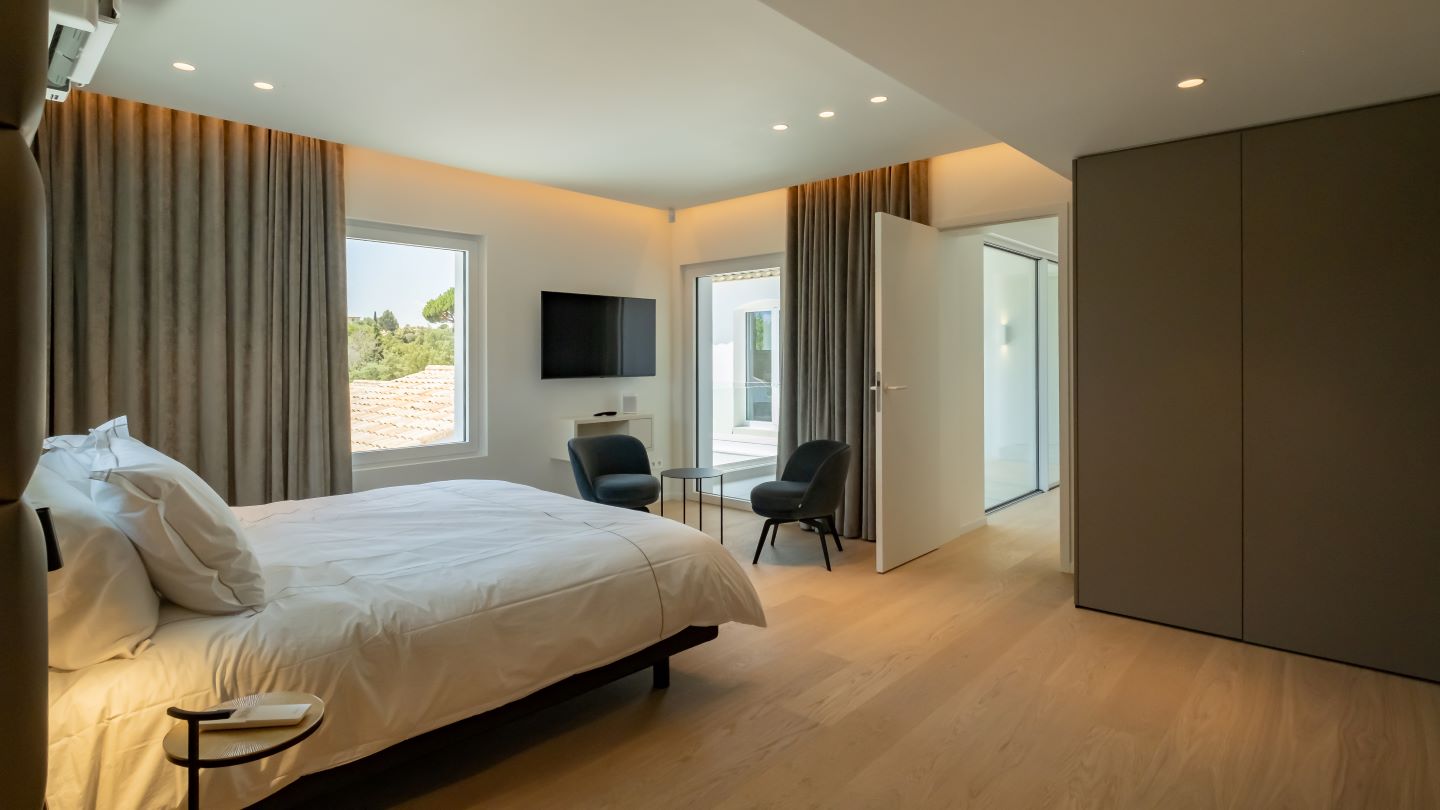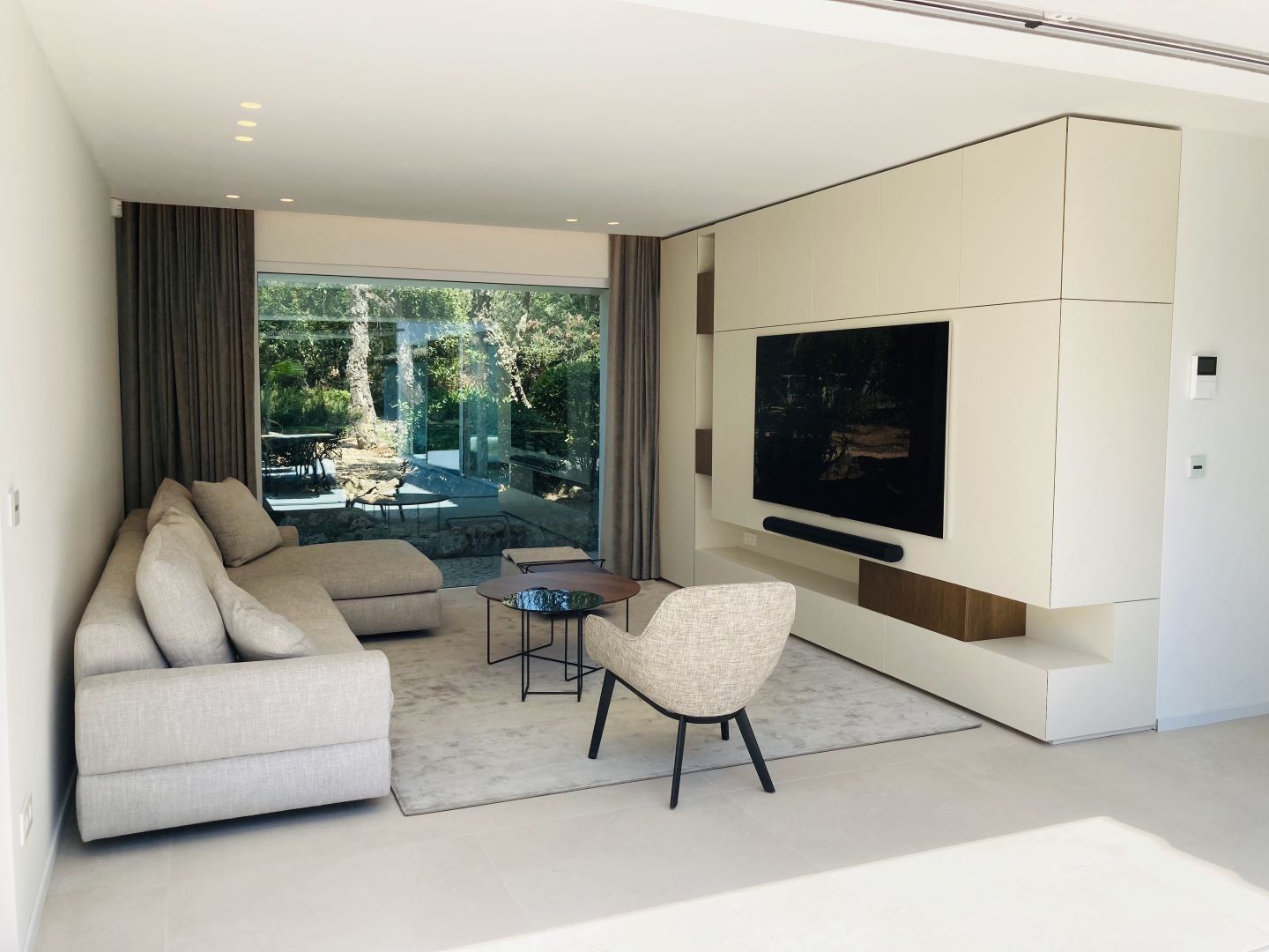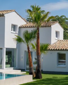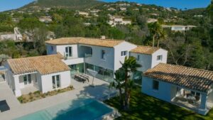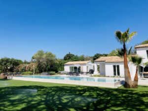 Grondige renovatie van een uitgestrekte Provençaalse villa gelegen in het exclusieve Domaine de Beauvallon. Het vlak terrein met een oppervlakte van 5000m² vormt het decor voor deze prachtige villa omringd door een volledig aangelegde parktuin. De traditionele villa werd tijdens de renovatie volledig omgebouwd en open getrokken naar de omliggende buitenruimtes toe. De woning draait zich rond de centrale buitenzone met ruime terrassen en het 100m² grote overloopzwembad. Jacuzzi, poolhouse, zonneterras en een eigen tennisplein vervolledigen de buitenbeleving. De renovatie voegt moderne toetsen toe aan de woning zonder afbreuk te doen aan het traditionele karakter. Een modern gerenoveerde klassiek aanvoelende villa.
