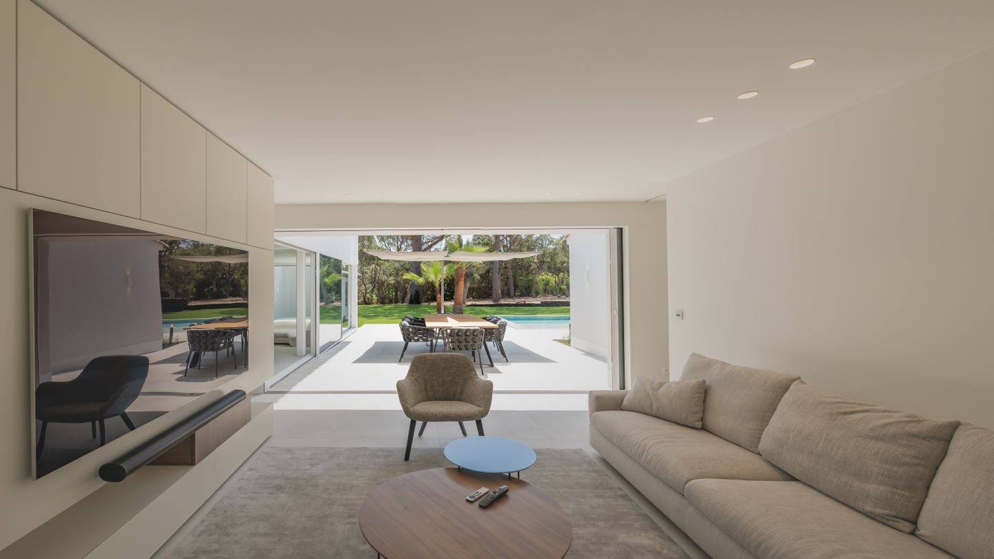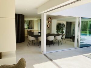 Ruime open leefruimte, volledig open naar het terras en het zwembad