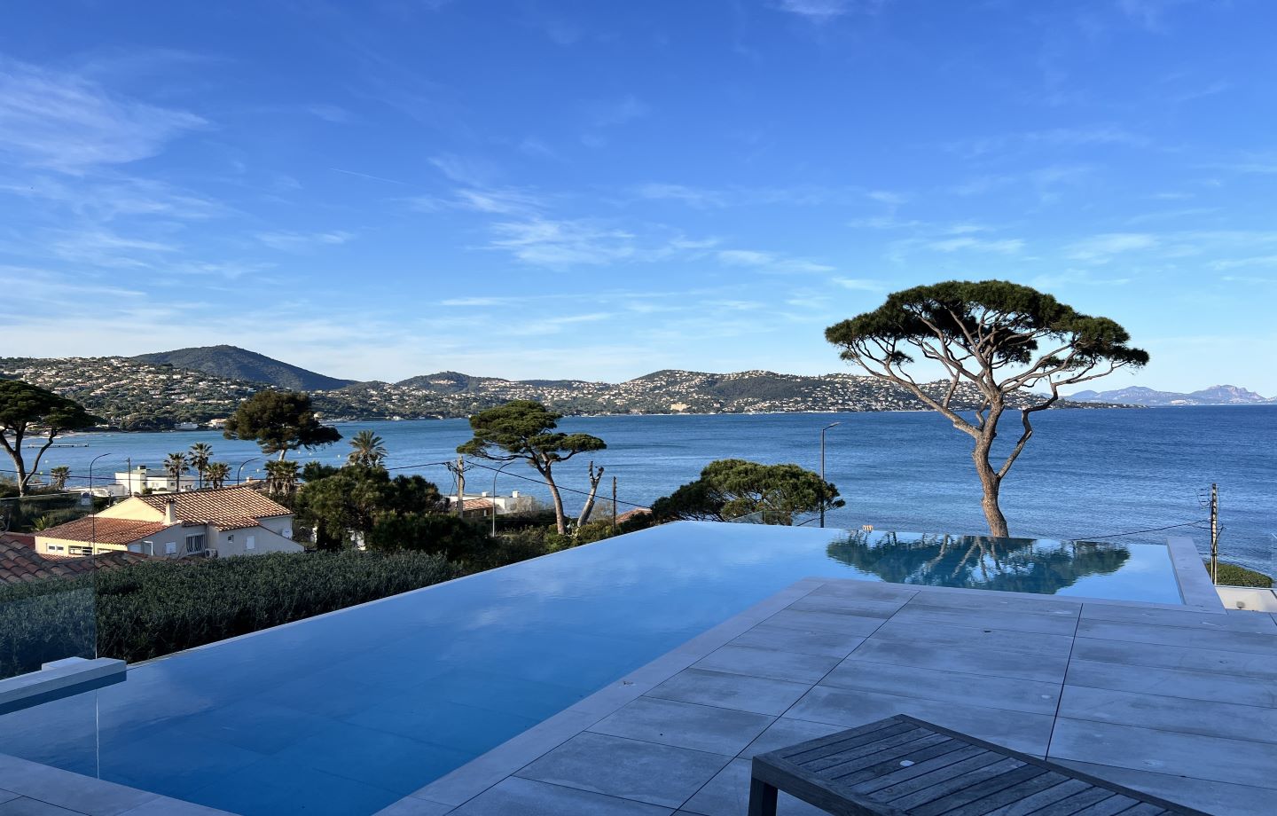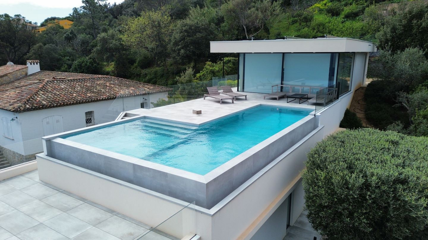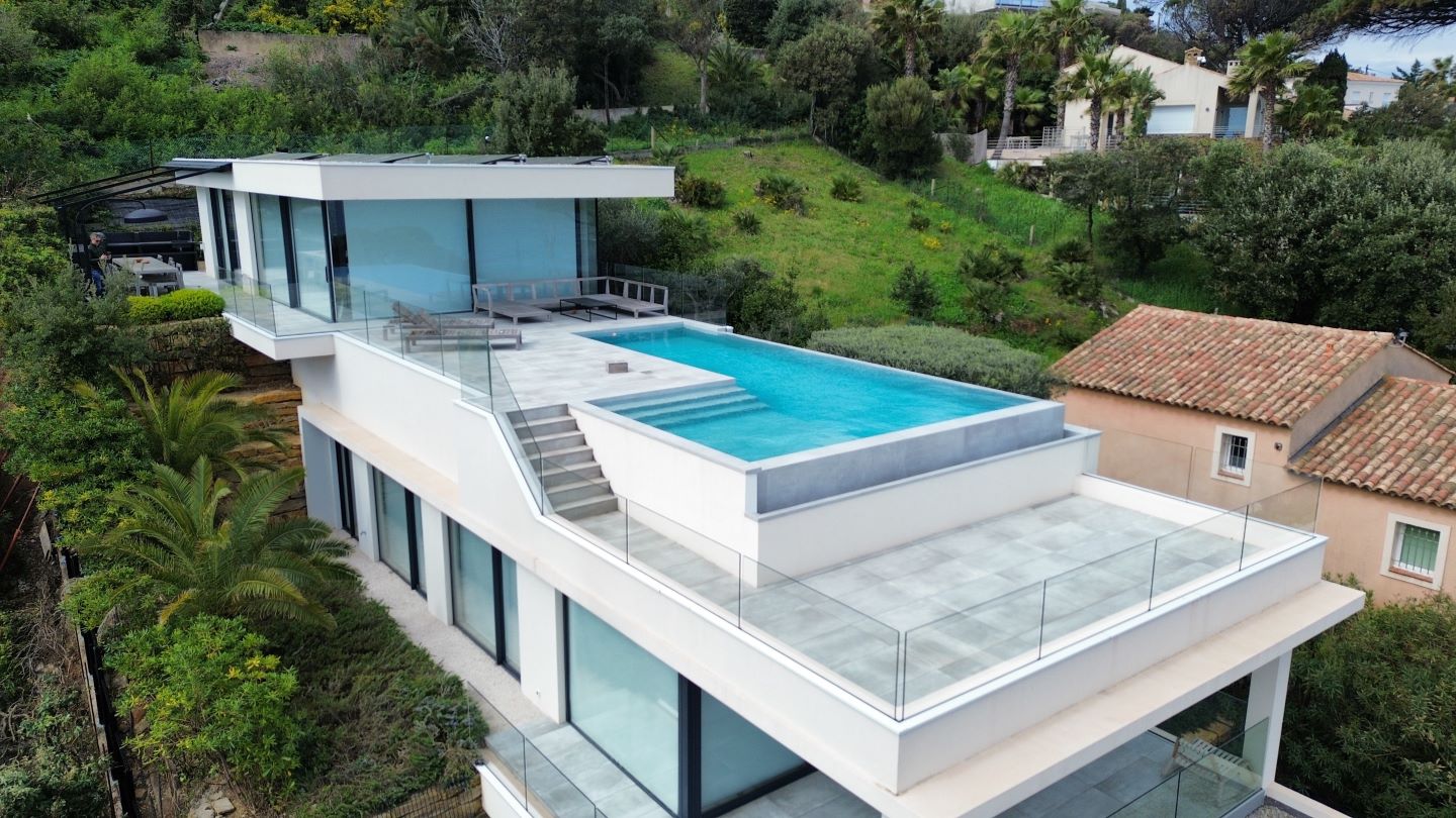 In eerste lijn aan de stranden van Sainte Maxime. De moderne villa werd trapsgewijs ingewerkt in het sterk hellend terrein. De woning trekt zich op tegen de bergflank om zo per niveau meer en meer ruimte te creëren. Het top down ontwerp draait de klassieke leefpatronen om: leven op de bovenste verdiepingen, nutsfuncties onderaan. Een ruim dakterras, met infinity pool en adembenemend zeezicht, sluit aan bij de leefzone. Grote raampartijen met maximale beglazing brengen deze buitenbeleving tot diep in de woning. Hoewel het ontwerp niet van onze hand is past het perfect binnen onze architecturale visie. Wij werden ingeschakeld voor de technische uitwerking en de realisatie.